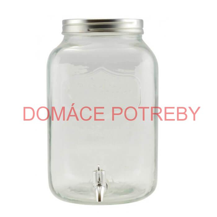 Sklenená barová party nádoba (Džbán) s kohútikom na nápoje, na vodu s citrónom, na džús, na domáce limonády, party drinky.