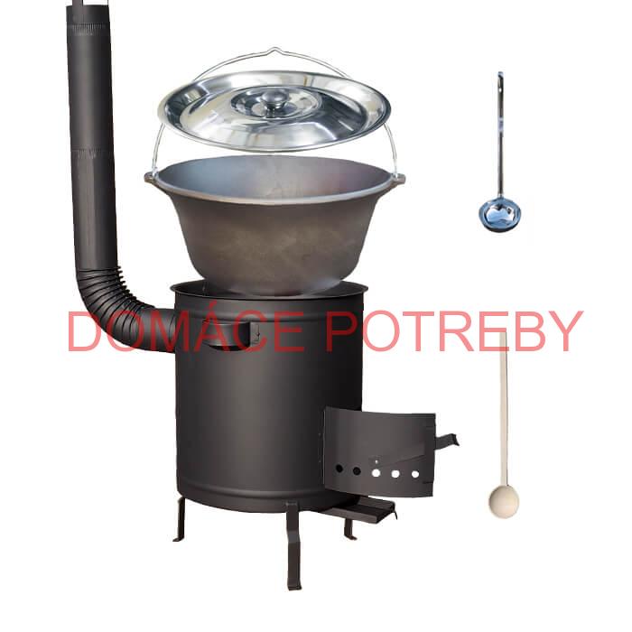 Kotlíková súprava na outdorové varenie gulášu a rybích polievok v prírode, v záhrade alebo v otvorenej kuchyne, predovšetkým pre chalupárov, chatárov, do kempu a na táborenie. Pri použití koša v kotlíku na varene mäsa, jaterníc, klobás, zeleniny do polievky a konzerv.