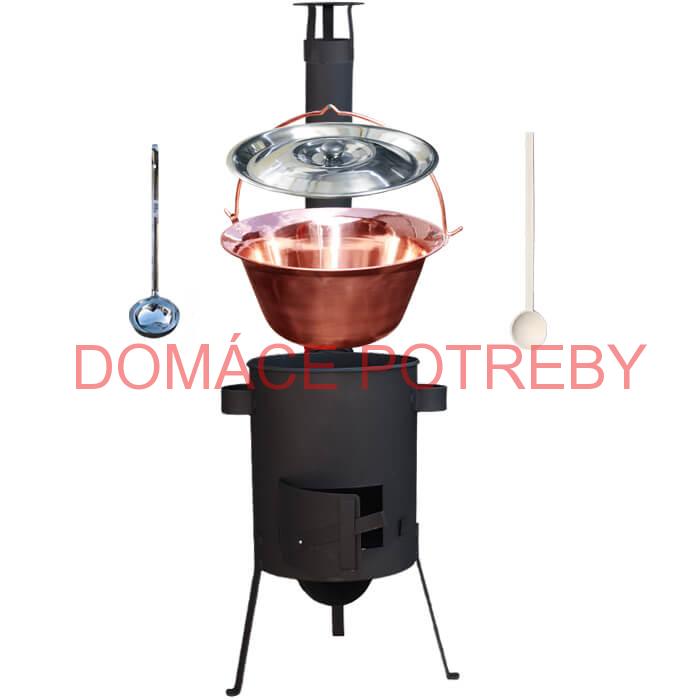 Kotlíková súprava na outdorové varenie gulášu a rybích polievok v prírode, v záhrade alebo v otvorenej kuchyne, predovšetkým pre chalupárov, chatárov, do kempu a na táborenie.