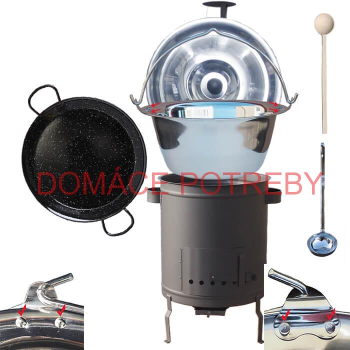 - Nerezový kotlík 15 L (0,8 mm) zosilnený s nitmi + Paella panvica 38 cm + hrubostenná (1,5 mm) žiaruvzdorná kotlina 36 PLUS 600