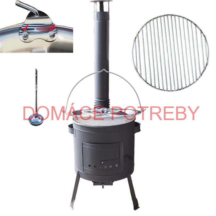 - Nerezový kotlík 20 L (0,8 mm) s nitmi INOX + Nerezový rošt 45 cm + nízka žiaruvzdorná kotlina 42 cm PLUS 600