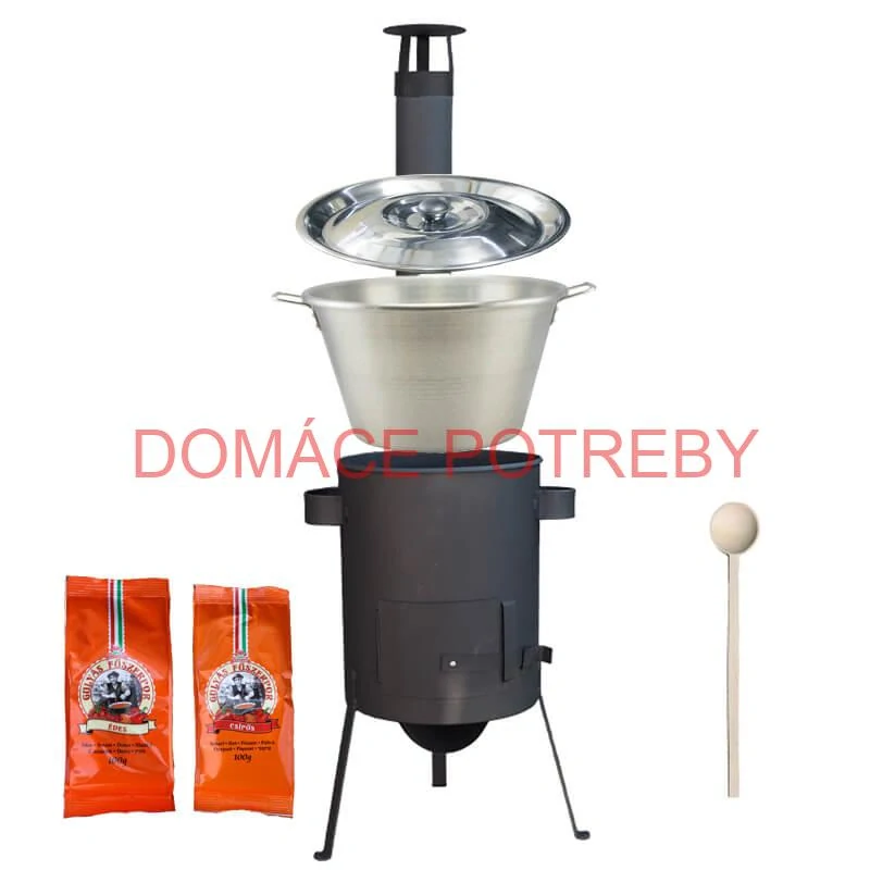Kotlíková súprava na varenie gulášu a iných pochutín v záhrade, v prírode pre rodiny, rôzne spoločenské akcie a posedenia pri dobrom guláši. Pri tejto kotlíkovej súprave bude pôžitok variť guláš v záhrade alebo v prírode.