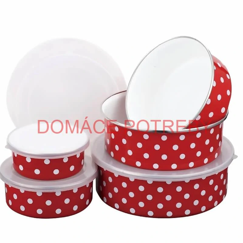 - Smaltovaná sada 5 úložných dóz s bodkami