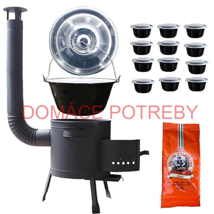 Kotlíková súprava na varenie gulášu a iných pochutín v záhrade, v prírode pre rodiny, rôzne spoločenské akcie a posedenia pri dobrom guláši.