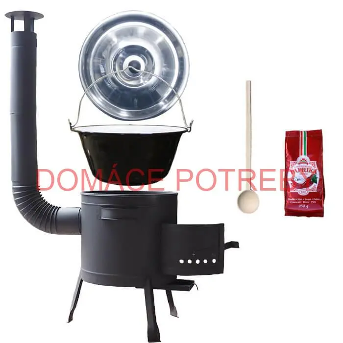 Kotlíková súprava na outdorové varenie gulášu a rybích polievok v prírode, v záhrade alebo v otvorenej kuchyne, predovšetkým pre chalupárov, chatárov, do kempu a na táborenie. Pri použití koša v kotlíku na varene mäsa, jaterníc, klobás, zeleniny do polievky a konzerv.