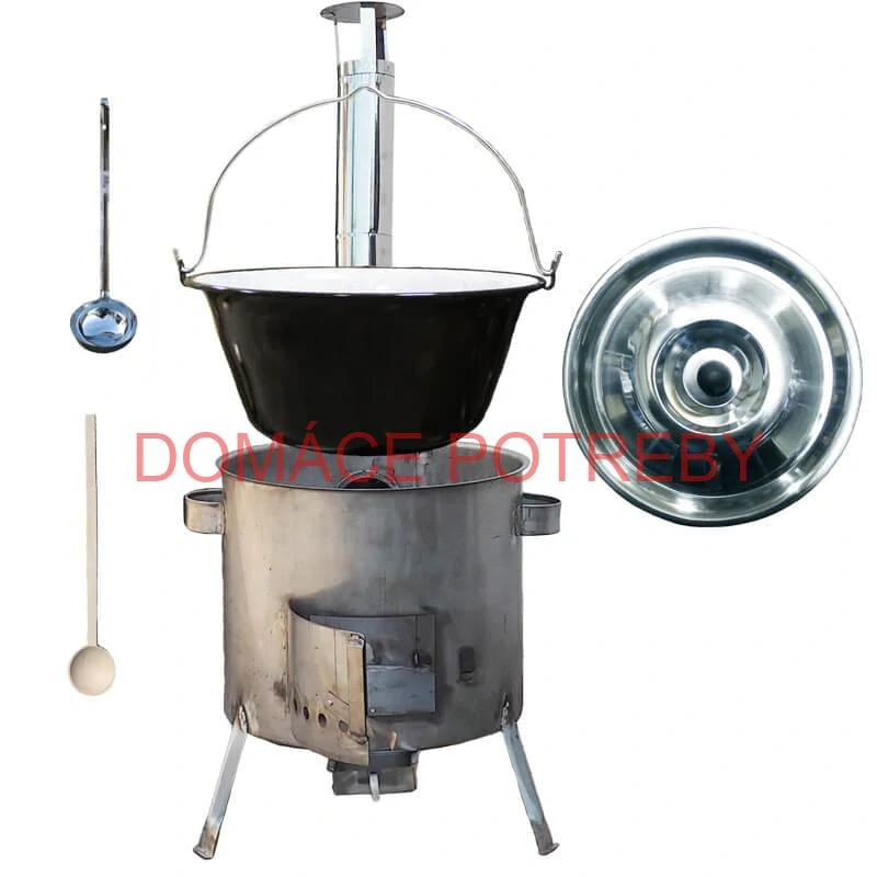 Kotlíková súprava na outdorové varenie gulášu a rybích polievok v prírode, v záhrade alebo v otvorenej kuchyne, predovšetkým pre chalupárov, chatárov, do kempu a na táborenie. Pri použití koša v kotlíku na varene mäsa, jaterníc, klobás, zeleniny do polievky a konzerv.